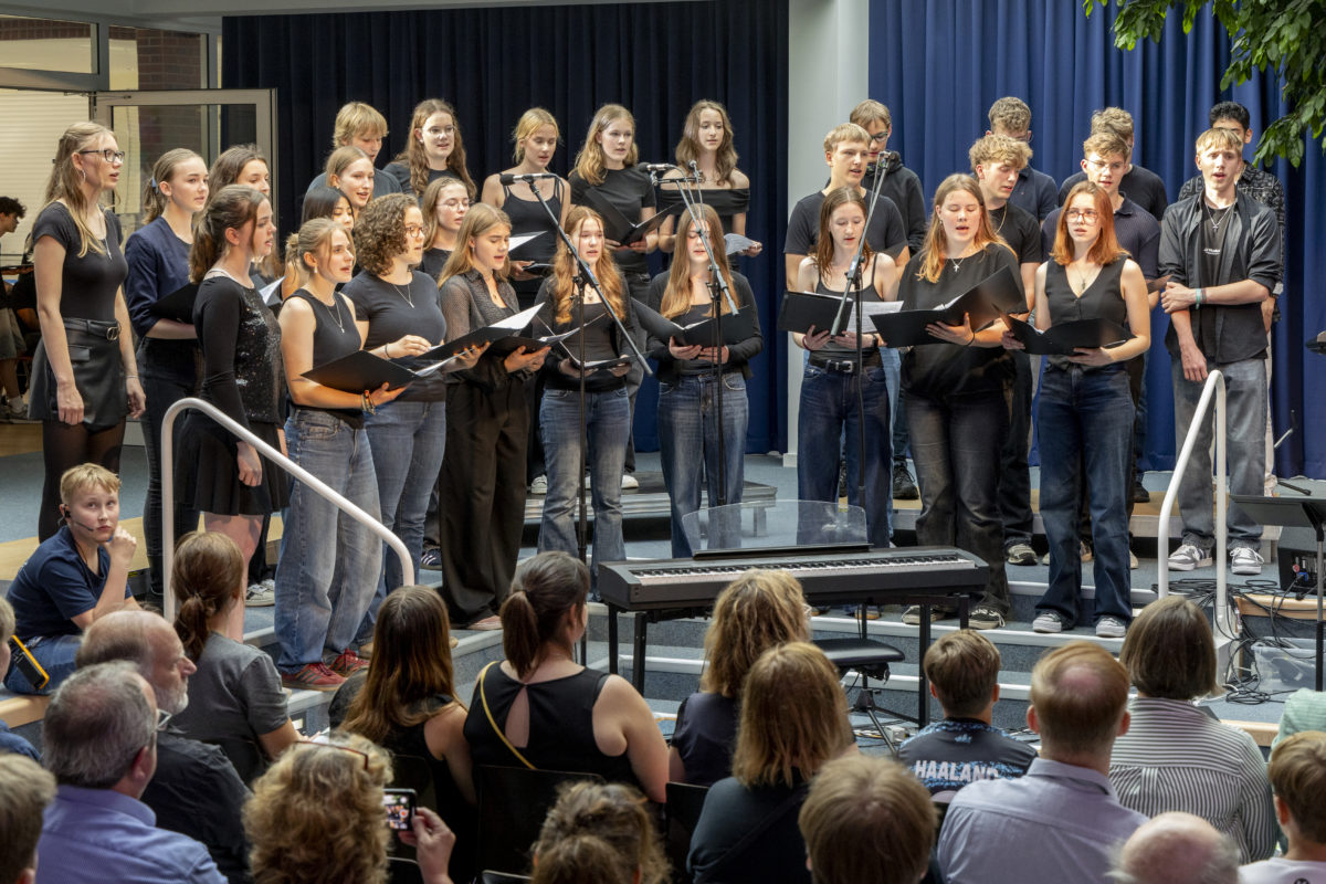 Die Schulkonzerte am Gymnasium Eckhorst erfreuen sich großen Interesses seitens der Schulgemeinschaft. Erstmals gingen die 130 musikaffinen Schülerinnen und Schüler unterschiedlichster Jahrgangsstufen und ihre engagierten Musiklehrkräfte mit zwei Sommerkonzerten am 10. und 11. Juli 2025 in die Schlusskurve des Schuljahres – zur Begeisterung des zahlreich erschie-nenen Publikums. „Wer hätte das gedacht – wir spielen endlich wieder in unserer frisch renovierten Kuhle!“, ruft Musiklehrerin Frederike Albers zu Beginn des Konzertes in die Menge. Nach mehrjähriger Ausweichlösung kehrten die Konzerte in den vermissten Originalspielort der Schule zurück.