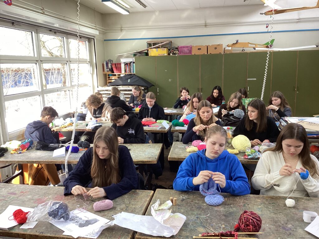 Unter der Leitung von Frau Dr. Börst und Frau Steinmetz konnten die Schülerinnen und Schüler die Techniken des Häkelns, Strickens und Stickens kennenlernen und ausprobieren.